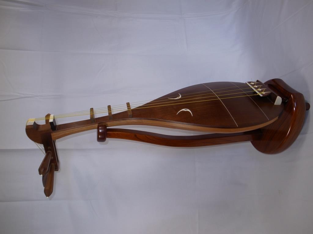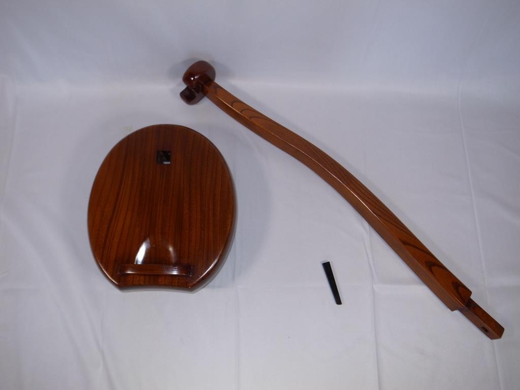 総欅製琵琶台。拭き漆仕上。竿の部分が抜き差しできます。サイズ 台の幅27.5㎝ 縦31㎝ 高さ9.5㎝ 竿を立てた状態の高さ 78.5㎝