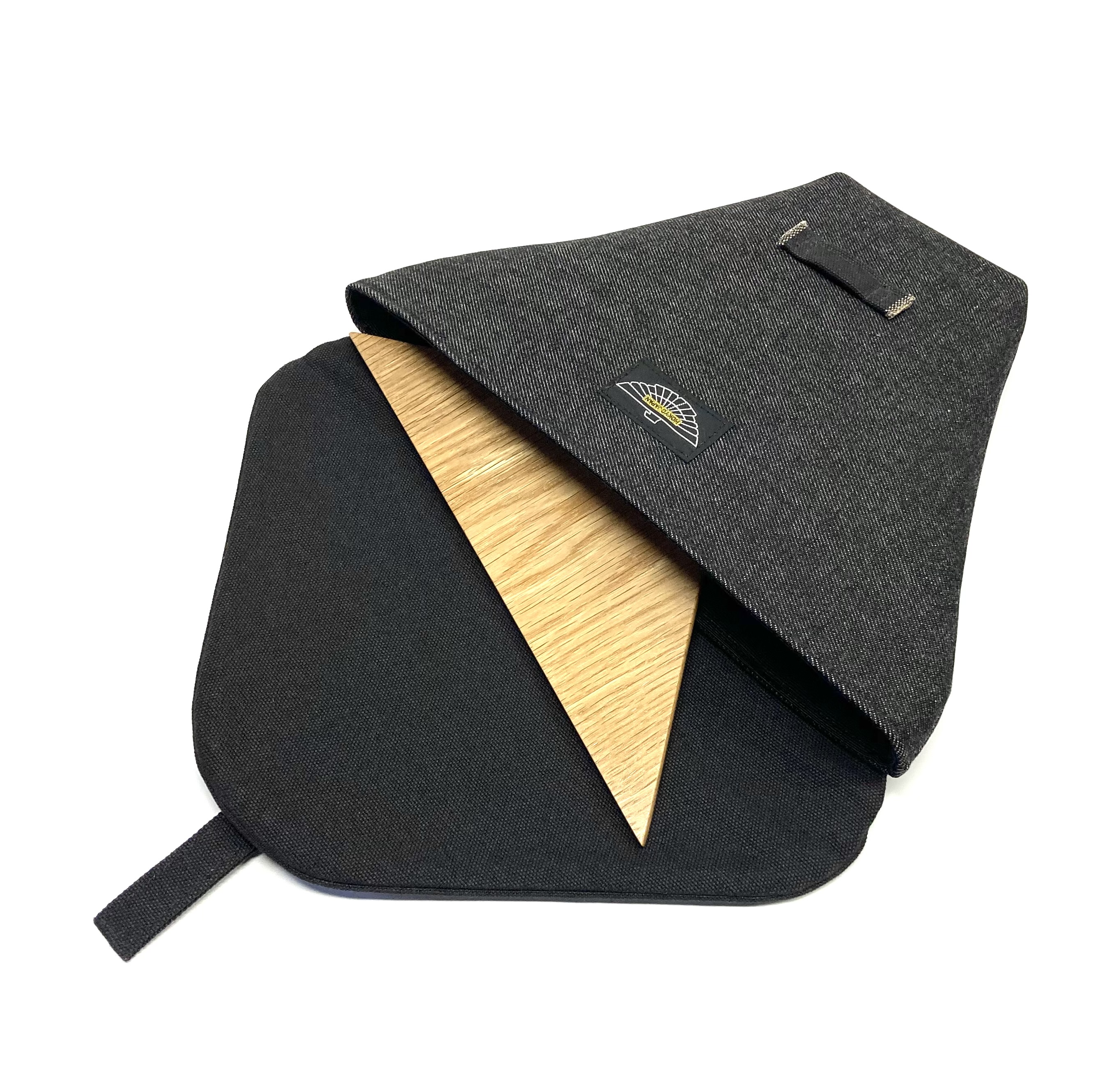 京都の帆布&デニム鞄の製造元、豊享ジャパンとのコラボレーション企画。帆布とデニムの組み合わせで丈夫で素敵な撥ケースができました。 内側には糸が入るポケット付き。内寸 幅30㎝ 高さ21㎝ 厚さ1.5㎝